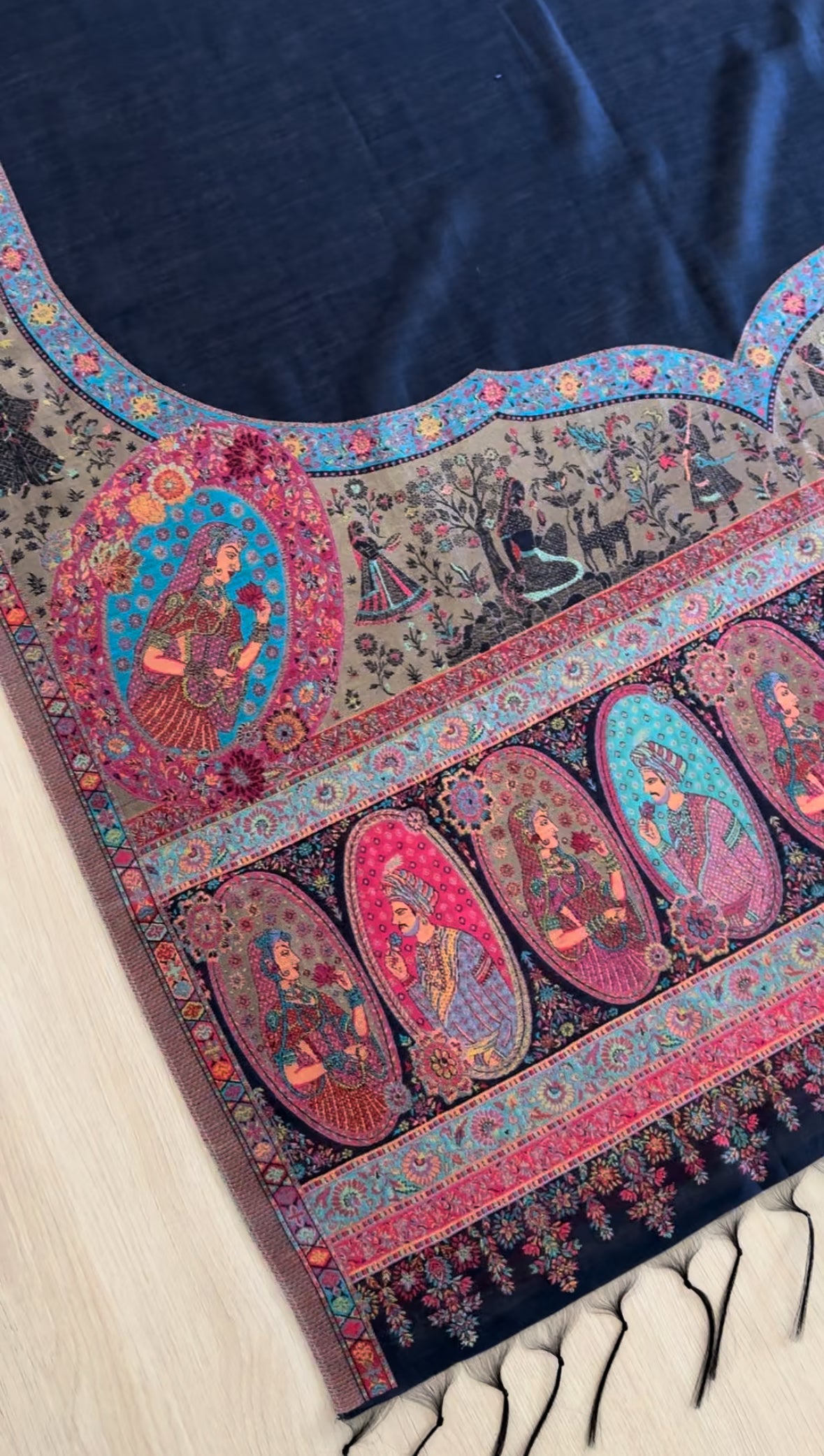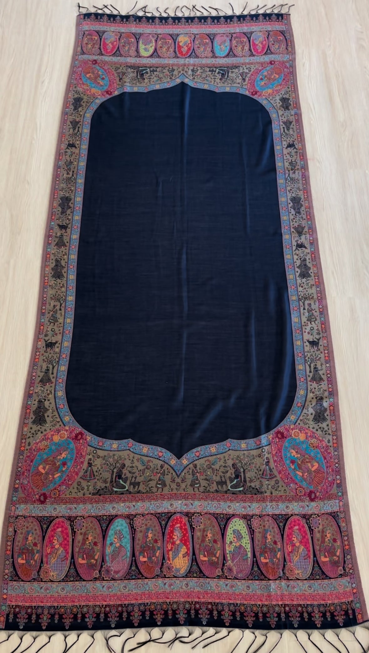 Mughal Border Kani Silk Shawl [Deep Blue Base]