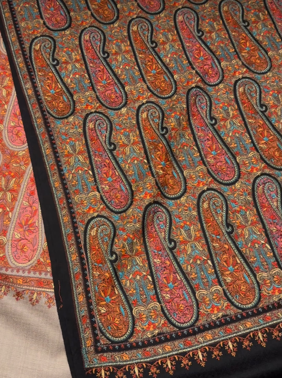 Embroidered Paisley Pashmina [Black Base]